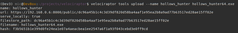 We can directly upload our custom version to Velociraptor using the velociraptor tools upload command