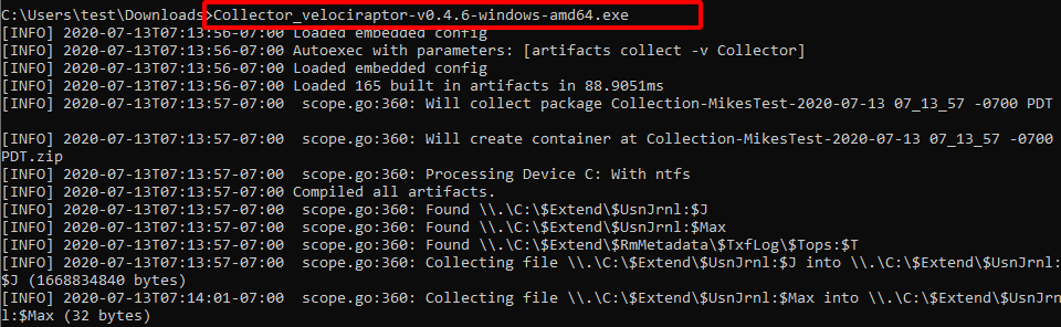 Remember that the offline collector is not limited to simply collecting files! It has the full power of Velociraptor at its disposal so it can collect any volatile machine state that can be collected by Velociraptor — including process memory scanning and dumping, file yara scans, MFT analysis and more.