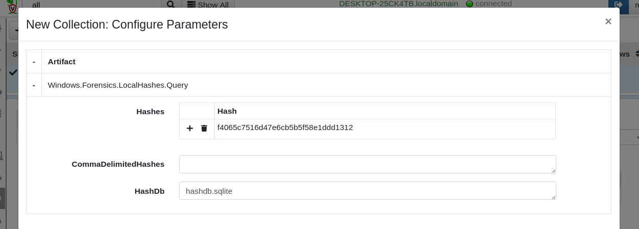 Collecting the Windows.Forensics.LocalHashes.Glob artifact will populate the local hash database by simply crawling a directory, hashing all files inside it and populated the database — this is useful to pre-populate the database with hashes of files created before Velociraptor was installed.