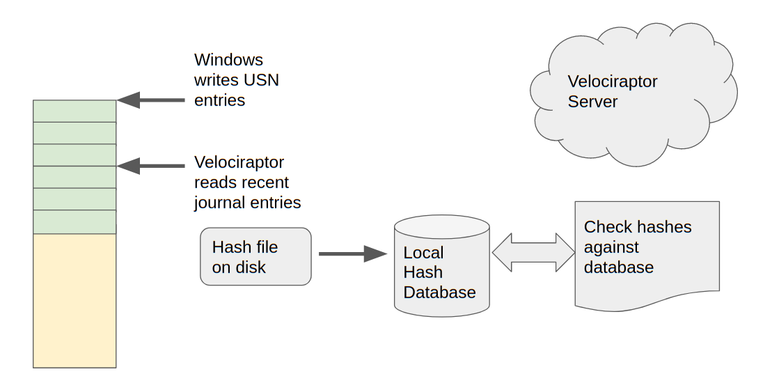 Having the ability for Velociraptor to actively watch for filesystem events in near real time opens the door for many potential applications. One very useful application is maintaining a local hash database on endpoints.