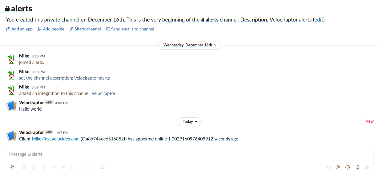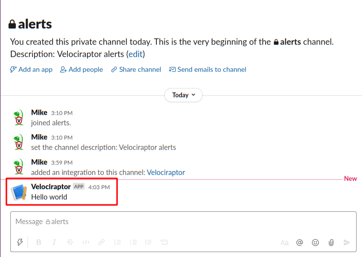 I will create a new channel called “alerts”