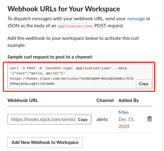 Webhooks are simply HTTP REST APIs which can be used by any software to post to the channel providing they have a special secret called a “Token”. I can add a new webhook to my workspace on this page