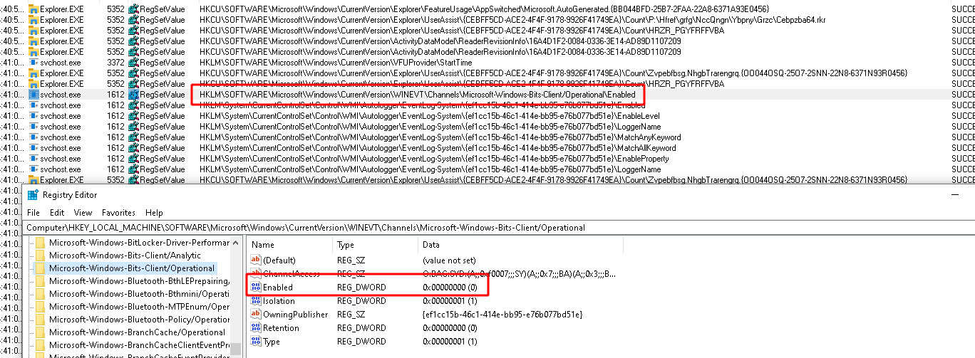 HKLM\SOFTWARE\Microsoft\Windows\CurrentVersion\WINEVT\Channels\Microsoft-Windows-Bits-Client/Operational\Enabled