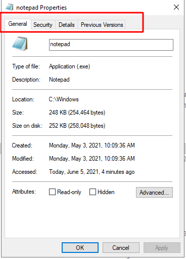 The example above shows that notepad.exe, does not typically contain embedded signing information. Similarly, if one clicks on the the notepad.exe binary in the GUI no digital signature information is shown