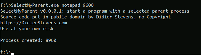 Didier Stevens wrote about it again in 2017’s post That Is Not My Child Process! where even Sysmon and Volatility memory analysis are demonstrated to be fooled by SelectMyParent!