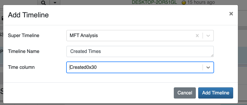 In this case I will add the Created times from the MFT to the timeline