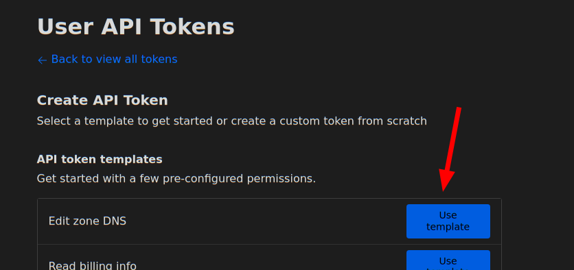 Edit Zone DNS in the API Token templates.You will require the “Edit” permission on Zone DNS and include the specific zone name you want to manage. The zone name is the domain you purchased for example “example.com”. You will be able to set the hostname under that domain, e.g. “velociraptor.example.com”