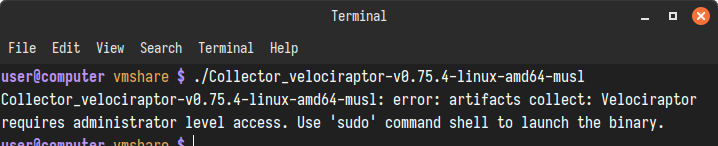 ./velociraptor-linux-amd64 -- --embedded_config Collector_velociraptor-collector