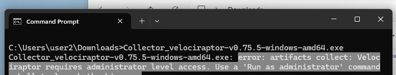 As mentioned above, this requirement is the default for offline collectors. When the collector is launched on the endpoint, it first checks if the user running it has admin-level privileges.