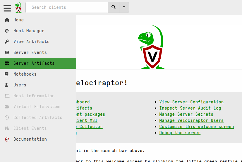 To get these external artifacts into your Velociraptor server’s artifact repository, we have a built-in server artifact which will download them from any or all of the external sources. Here’s how to do that: