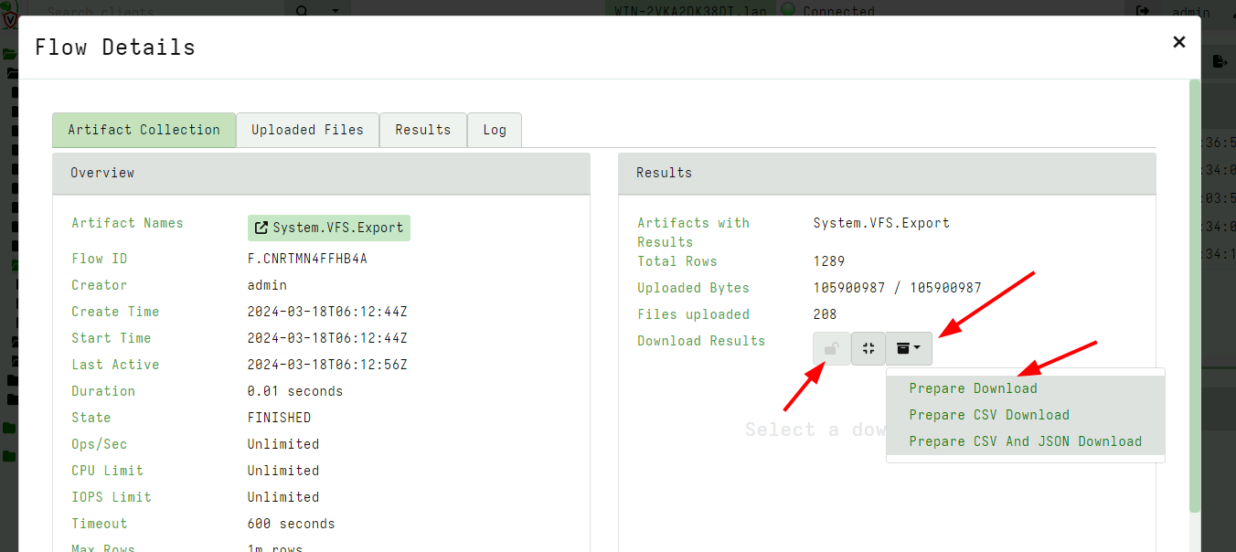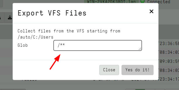 Hit the export button - this will start a server collection to take a